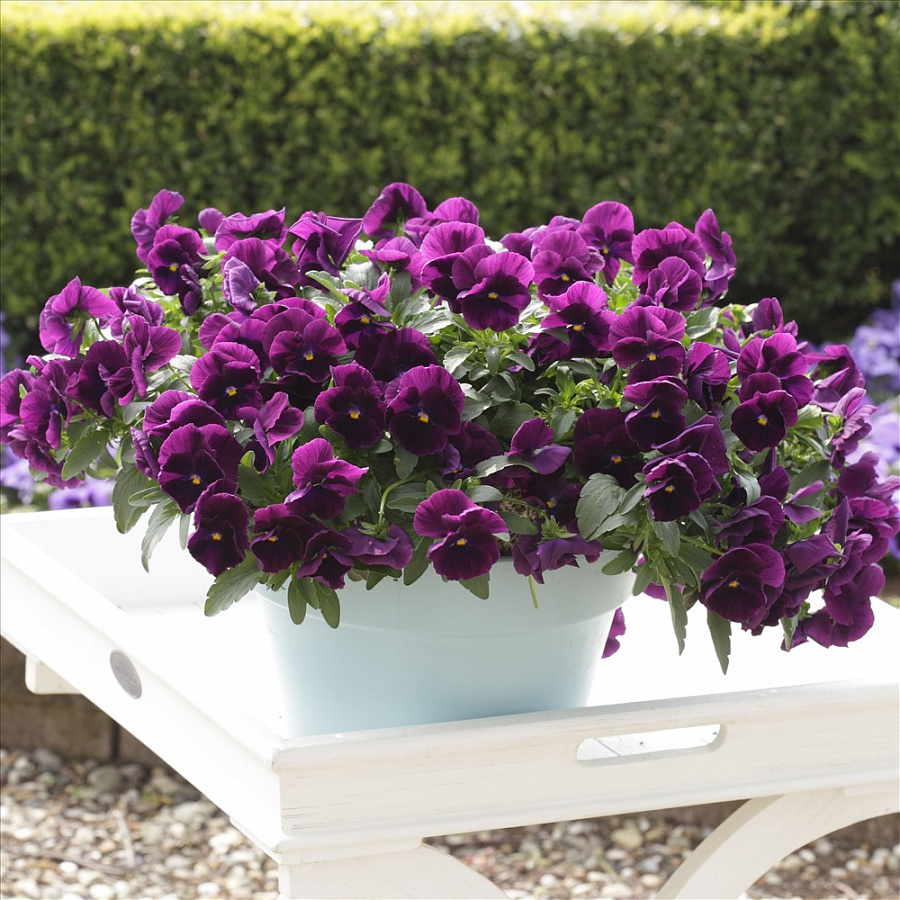 Листья виолы ампельной Cool Wave Purple имеют интересную форму и текстуру, что добавляет дополнительный шарм этому растению. Она предпочитает солнечные места и плодородные почвы, поэтому выберите для нее место с хорошим освещением и обильным поливом. Регулярное удобрение поможет поддерживать здоровый рост и яркое цветение.