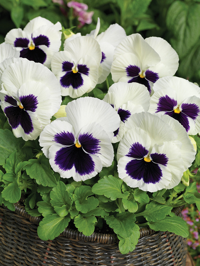Виола крупноцветковая матрикс вайт блотч - это настоящее воплощение нежности и изысканности в вашем саду. Ее фиолетово-белые цветы радуют глаз своей красотой и изяществом. Растение достигает высоты 15-20 см, что делает его идеальным выбором для групповых посадок. Листья виолы имеют форму сердца, создавая уютный и романтичный вид.