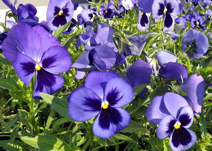 Это растение отлично подходит для групповых посадок, создавая яркие цветочные композиции. Виола предпочитает солнечные и полутенистые места, а также плодородные почвы. Для обильного цветения растение требует регулярного полива и опрыскивания, особенно в жаркие летние дни. Рекомендуется удобрять виолу весной и летом для поддержания здоровья и красоты.